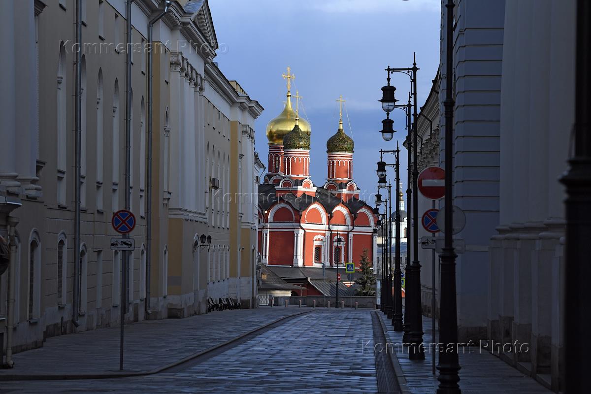 Виды Москвы во время режима самоизоляции из-за опасности распространения коронавирусной инфекции COVID-19. Жанровая фотография.