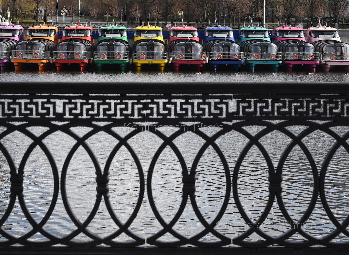 Виды Москвы во время режима самоизоляции из-за опасности распространения коронавирусной инфекции COVID-19. Жанровая фотография.