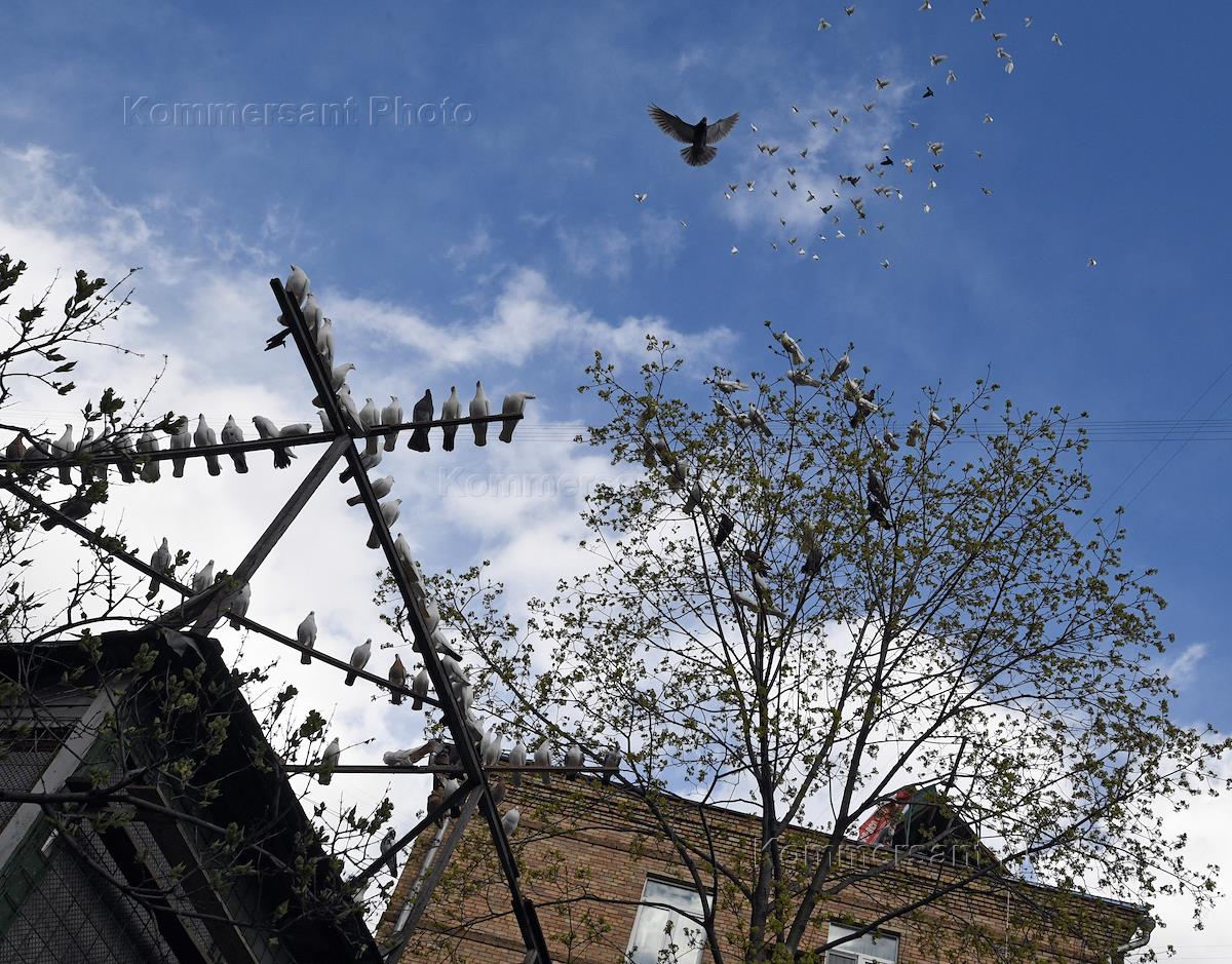 Виды Москвы во время режима самоизоляции из-за опасности распространения коронавирусной инфекции COVID-19. Жанровая фотография.