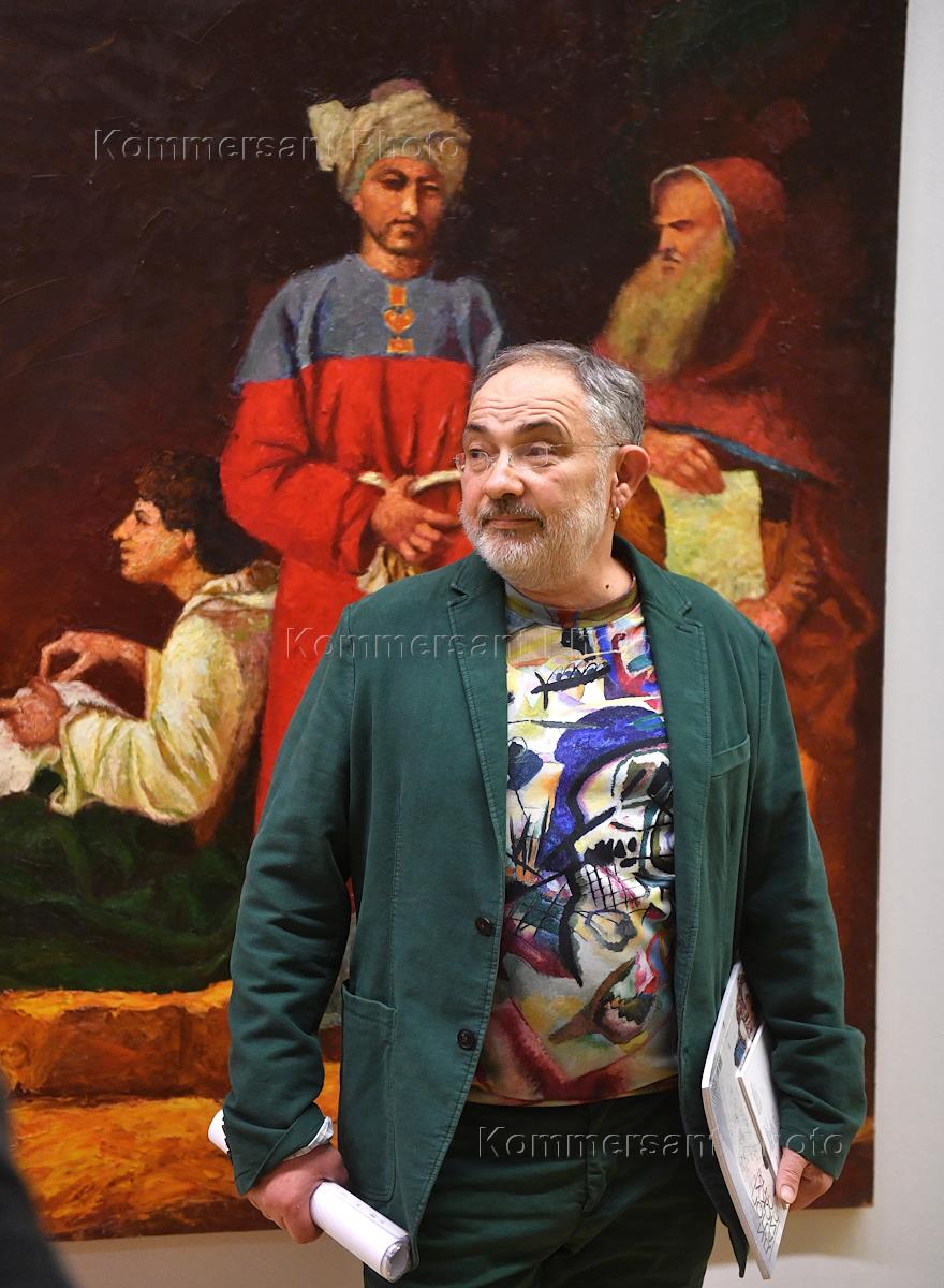 Пресс-показ выставки "Дар Марата Гельмана" в пространстве Государственной Третьяковской галереи на Крымском Валу. Художник Анатолий Осмоловский на пресс-показе.