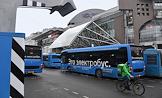 Жанровая фотография. Электробусы в Москве у торгового центра "Европейский".