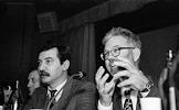 Президент международной организации "Нарконон" Джон Джафф (справа) и президент Российского общества спасения детей и подростков от наркомании Владимир Иванов (слева) во время пресс-конференции.