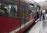 Виды Стокгольм. Пассажиры во время посадки в автобус.