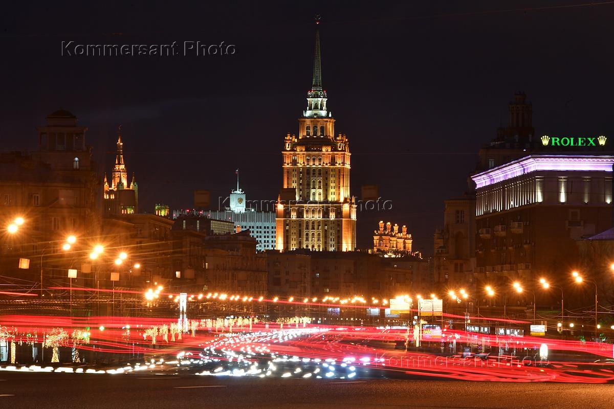 Виды вечерней Москвы. Здание Министерства иностранных дел (МИД) России и новогодняя иллюминация.