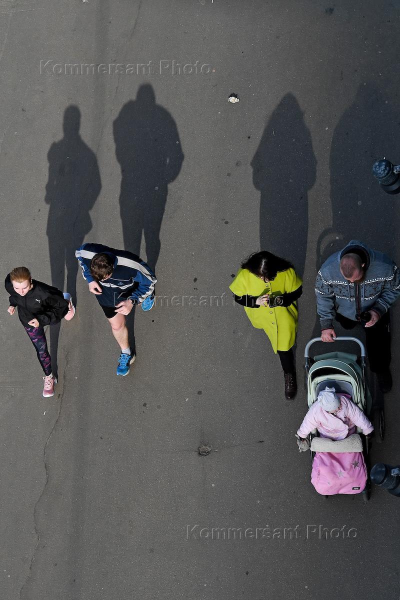 Genre photography. An employee of the Municipal Services Complex disinfects public spaces to prevent the spread of coronavirus infection ioutside the Polyanka metro station.