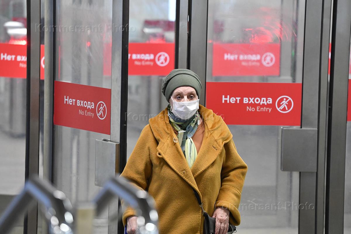Жанровая фотография. Пассажиры в медицинских масках в Московском метрополитене.