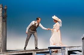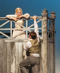 Репетиция спектакля "Варвары" по пьесе Максима Горького режиссера Владимира Бейлиса на сцене Государственного академического Малого театра. Актеры Ольга Жевакина (слева) и Владимир Сафронов (в центре) на репетиции.