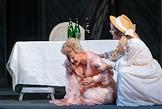 Репетиция спектакля "Варвары" по пьесе Максима Горького режиссера Владимира Бейлиса на сцене Государственного академического Малого театра. Актрисы Ольга Жевакина (слева) и Анастасия Горячева (справа) на репетиции.