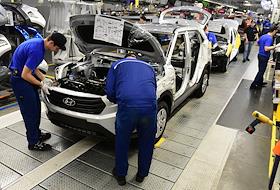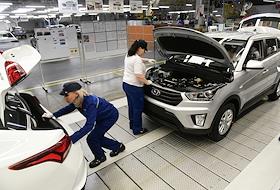 Церемония выпуска 2-миллионного автомобиля компании "Хендэ Мотор Мануфактуринг Рус" (Hyundai). Автомобильный конвейер.