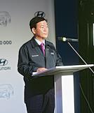 Церемония выпуска 2-миллионного автомобиля компании "Хендэ Мотор Мануфактуринг Рус" (Hyundai). Генеральный директор завода "Хендэ Мотор Мануфактуринг Рус" в Санкт-Петербурге Сон Кёнгсу во время церемонии.
