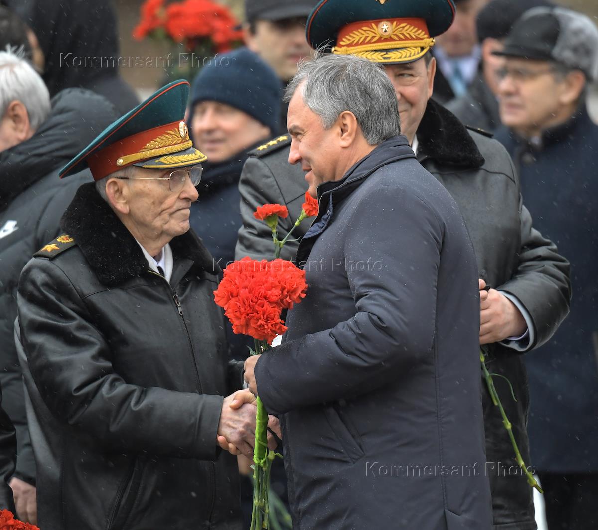 Церемония возложения венков к Могиле Неизвестного Солдата в честь Дня защитника Отечества. Председатель Государственной думы России Вячеслав Володин (в центре) во время церемонии.