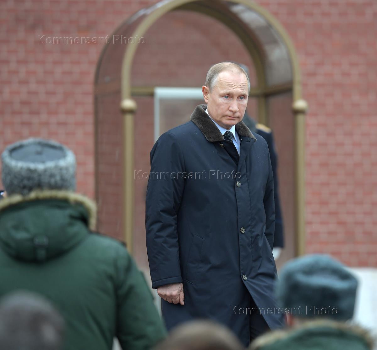 Церемония возложения венков к Могиле Неизвестного Солдата в честь Дня защитника Отечества. Президент России Владимир Путин во время церемонии.
