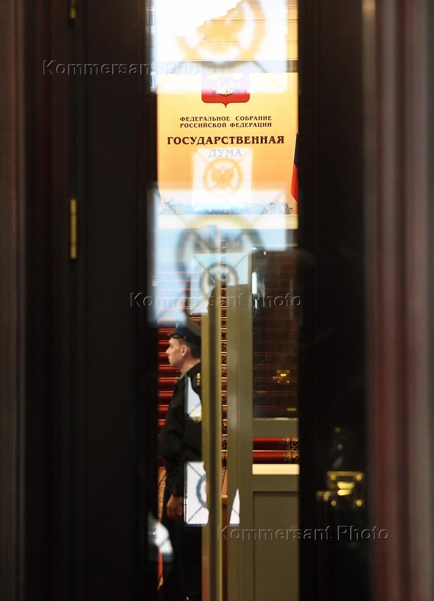 Жанровая фотография. Входная дверь в здание Государственной думы России. Пост прохода.