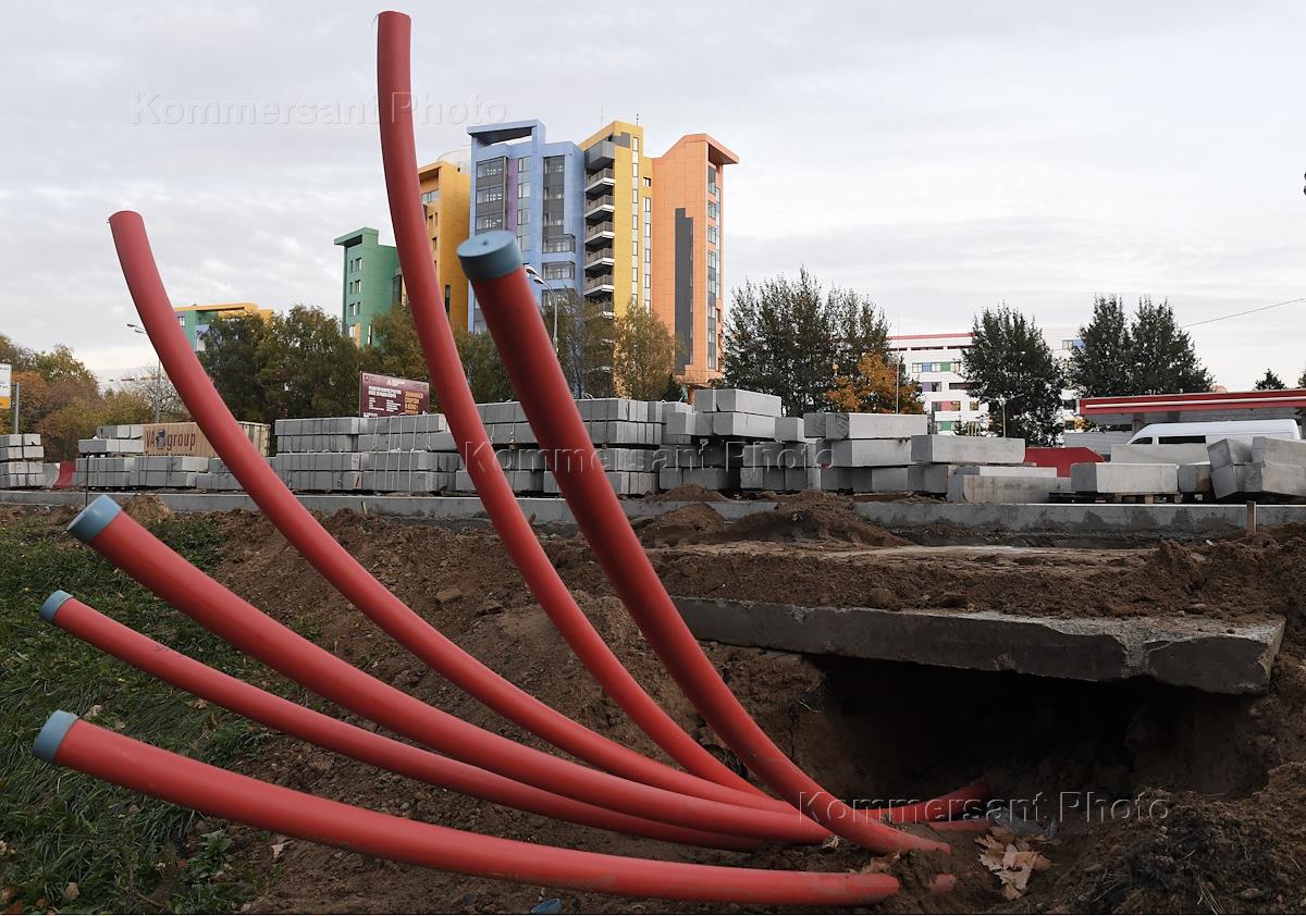 Жанровая фотография. Трубы подземных коммуникаций на строительной площадке.