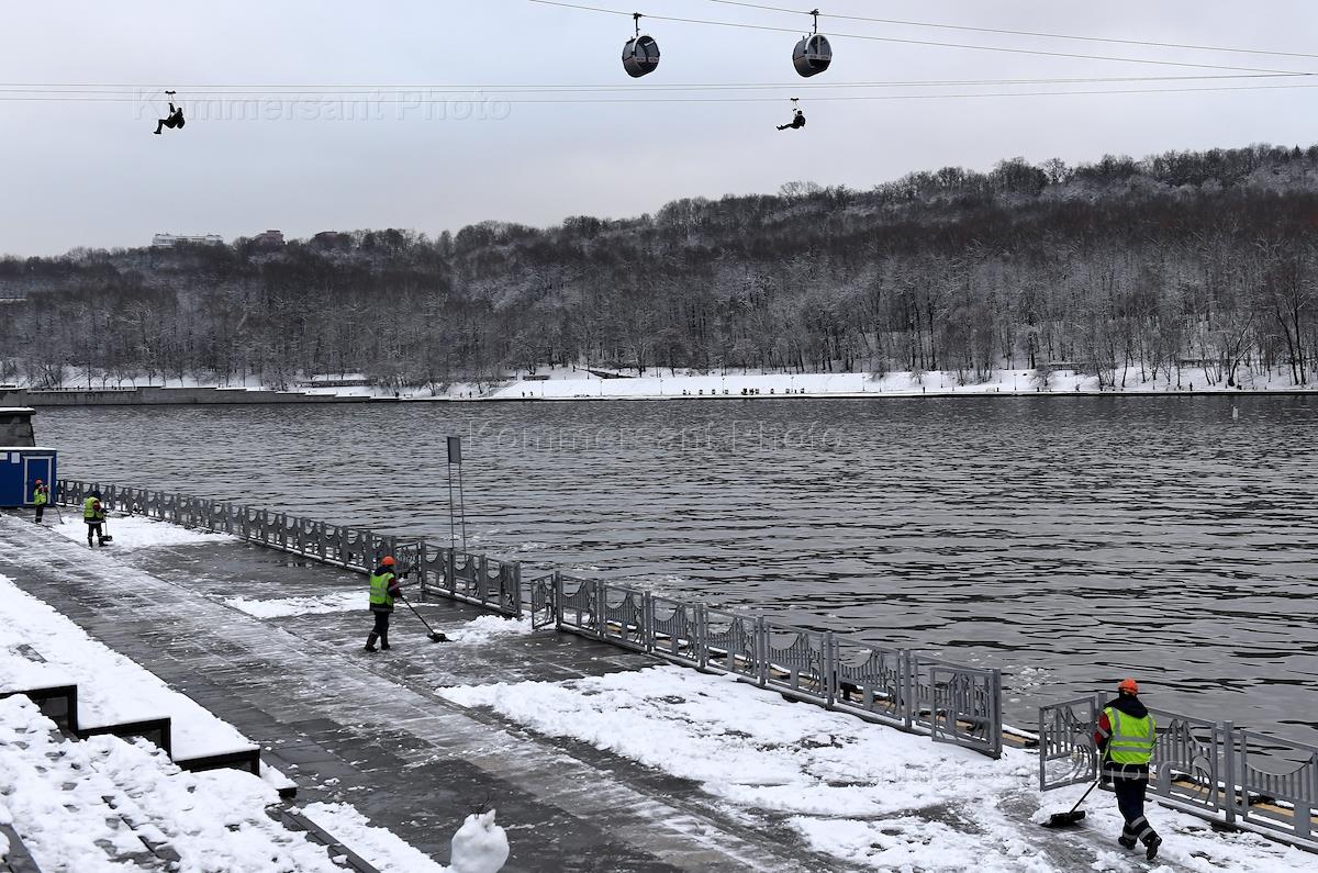 Виды Москвы. Жанровая фотография. Уборка снега на набережной Москвы-реки.