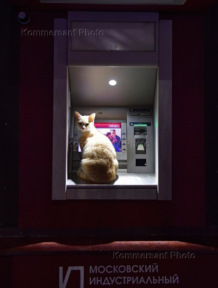 Жанровая фотография. Виды Грозного. Мужчина у банкомата, расположенного в административном здании.