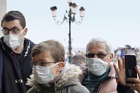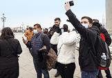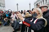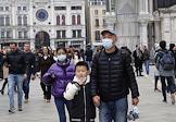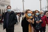 Коронавирус в Италии. Жанровая фотография. Туристы в медицинских масках на Площади Святого Марка.