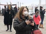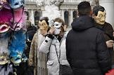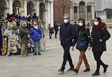 Туристы в медицинских и карнавальных масках на Площади Святого Марка.