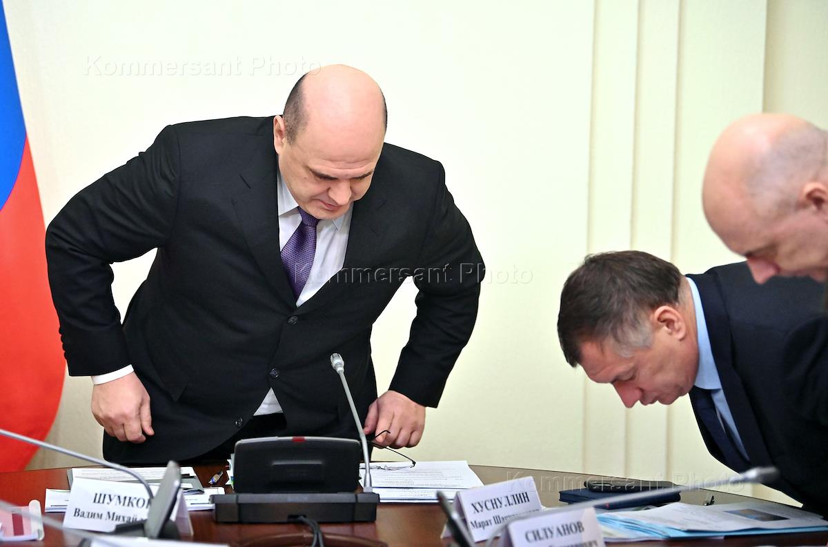 Рабочая поездка председателя правительства России Михаила Мишустина в Курган. Губернатор Курганской области Вадим Шумков (третий слева) и председатель правительства России Михаил Мишустин (справа) во время совещания "Об утверждении индивидуальной программы социально-экономического развития Курганской области на 2020-2024 годы".