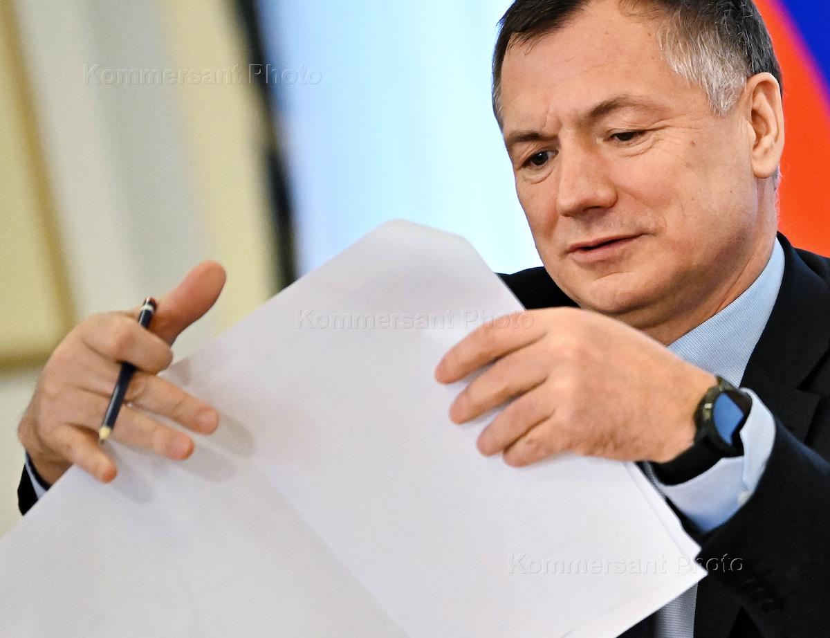 Рабочая поездка председателя правительства России Михаила Мишустина в Курган. Министр экономического развития России Максим Решетников перед началом совещания "Об утверждении индивидуальной программы социально-экономического развития Курганской области на 2020-2024 годы".