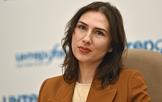 Пресс-коференция руководства Российской Премьер-Лиги (РПЛ), посвященная старту весенней части РПЛ сезона 2019-2020 годов и подписанию договора с титульным спонсором РПЛ Группой "Тинькофф", в агенстве "Интерфакс". Вице-президент банка "Тинькофф" Анна Михина во время пресс-конференции.