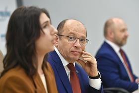 Пресс-коференция руководства Российской Премьер-Лиги, посвященная старту весенней части РПЛ сезона 2019-2020 годов и подписанию договора с титульным спонсором Премьер-Лиги - Группой Тинькофф в агентстве "Интерфакс".