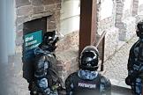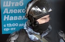 Марш памяти политика Бориса Немцова от Страстного бульвара до проспекта Академика Сахарова. Боец Росгвардии во время дежурства у входа в здание штаба оппозиционера Алексея Навального во время марша.