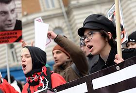Марш памяти политика Бориса Немцова от Страстного бульвара до проспекта Академика Сахарова. Жанровая фотография.