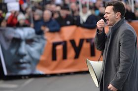 Марш памяти политика Бориса Немцова от Страстного бульвара до проспекта Академика Сахарова. Лидер движения "Солидарность" Илья Яшин во время марша.