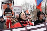Марш памяти политика Бориса Немцова от Страстного бульвара до проспекта Академика Сахарова. Участники марша. Плакат "Свободу Шестуну!".