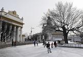 Празднование "Широкой Масленицы" на ВДНХ. Посетители на катке.