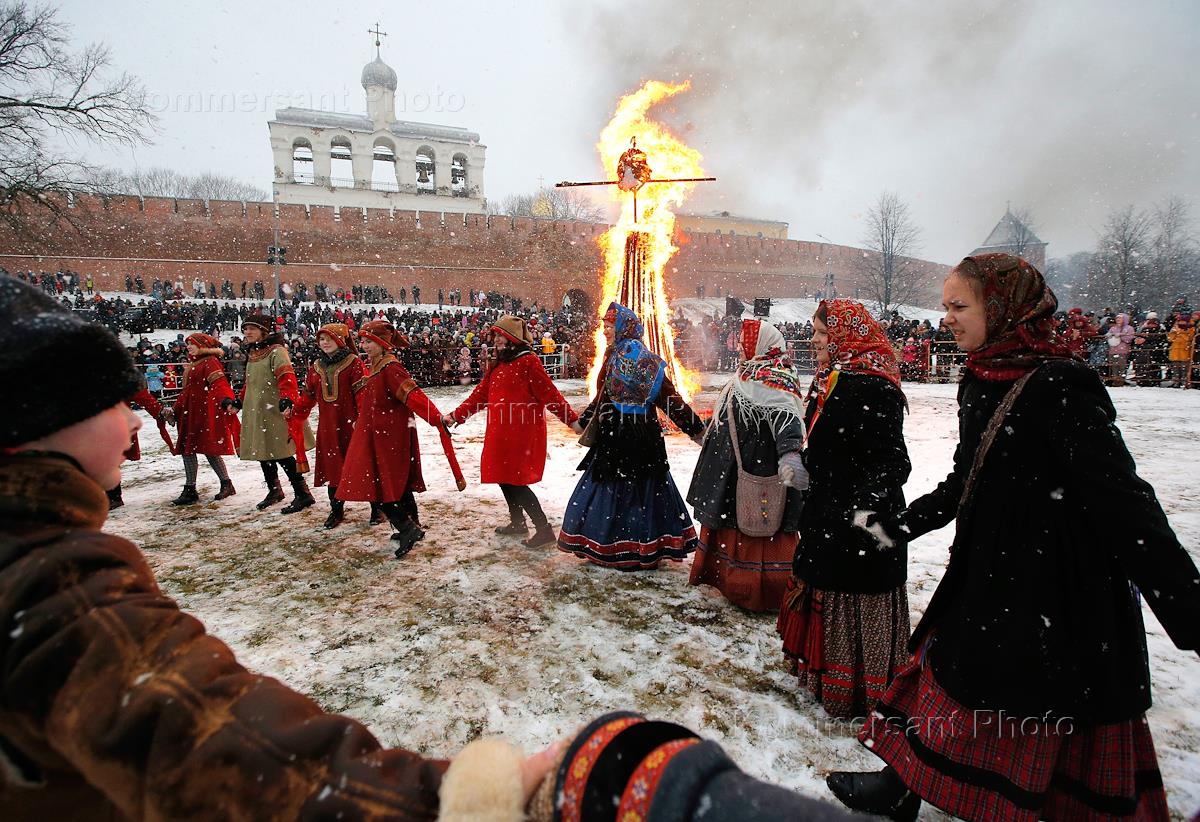 Празднование "Широкой Масленицы" на Софийской набережной. Сожжение чучела Масленицы.