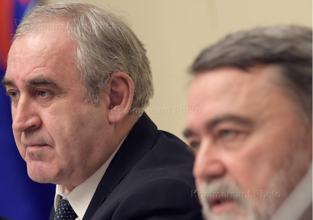 Заседание Президиума фракции "Единая Россия" в Государственной думе (ГД) России с участием руководителя Федеральной антимонопольной службы Игоря Артемьева. Председатель комитета ГД России по образованию и науке Вячеслав Никонов (справа) во время заседания.
