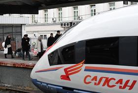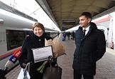 Встреча 40-миллионного пассажира поезда "Сапсан" на Ленинградском вокзале.