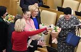 Пленарное заседание Государственной думы (ГД) России. Слева направо: член комитета ГД России по государственному строительству и законодательству Татьяна Касаева, заместитель председателя комитета ГД России по экологии и охране окружающей среды Елена Серова, заместитель председателя ГД России Ольга Тимофеева и член комитета ГД России по культуре Ольга Германова перед началом заседания.