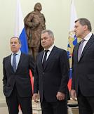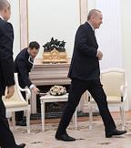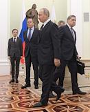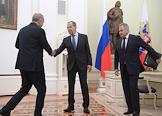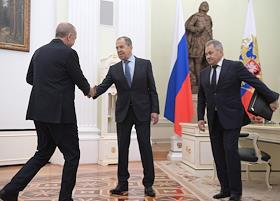 Переговоры президента России Владимира Путина с президентом Турецкой Республики Реджепом Тайипом Эрдоганом в Кремле. Слева направо: министр иностранных дел России Сергей Лавров, министр обороны России Сергей Шойгу и помощник президента России Юрий Ушаков во время переговоров.