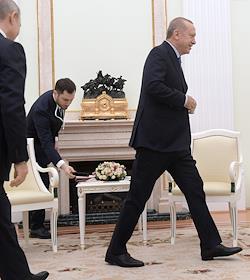 Президент Турецкой Республики Реджеп Тайип Эрдоган во время переговоров c президентом России Владимиром Путиным в Кремле.