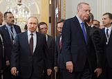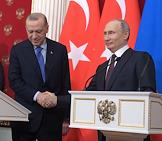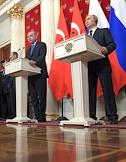 Переговоры президента России Владимира Путина с президентом Турции Реджепом Тайипом Эрдоганом в Кремле. Президент Турции Реджеп Тайип Эрдоган (слева) и президент России Владимир Путин (справа) во время переговоров.