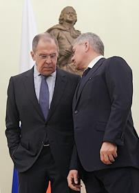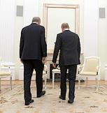 Переговоры президента России Владимира Путина с президентом Турции Реджепом Тайипом Эрдоганом в Кремле. Министр иностранных дел России Сергей Лавров (слева) и министр обороны России Сергей Шойгу (справа) перед началом переговоров.