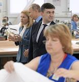 Рабочая поездка президента России Владимира Путина во Ивановскую область. Справа налево: президент России Владимир Путин, губернатор Ивановской области Станислав Воскресенский и генеральный директор Ивановского парашютного завода "Полет" Юлия Портнова во время посещения Ивановского парашютного завода "Полет".