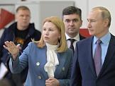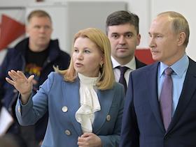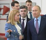 Рабочая поездка президента России Владимира Путина во Ивановскую область. Слева направо: генеральный директор Ивановского парашютного завода "Полет" Юлия Портнова, президент России Владимир Путин и губернатор Ивановской области Станислав Воскресенский во время посещения Ивановского парашютного завода "Полет".