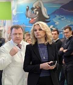 Рабочая поездка президента России Владимира Путина в Ивановскую область. Заместитель председателя правительства России Татьяна Голикова (слева) и министр здравоохранения России Михаил Мурашко (справа) во время посещения городской клинической больницы №4.