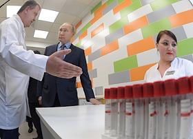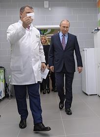 Рабочая поездка президента России Владимира Путина в Ивановскую область. Президент России Владимир Путин (в центре) и главный врач городской клинической больницы №4 города Иваново Александр Кукушкин (слева) во время посещения городской клинической больницы №4.