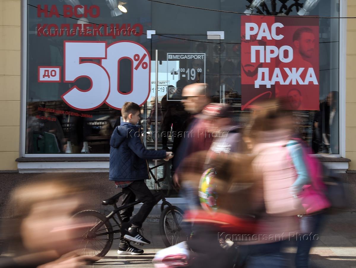 Жанровая фотография. Надпись в витрине магазина "Распродажа".