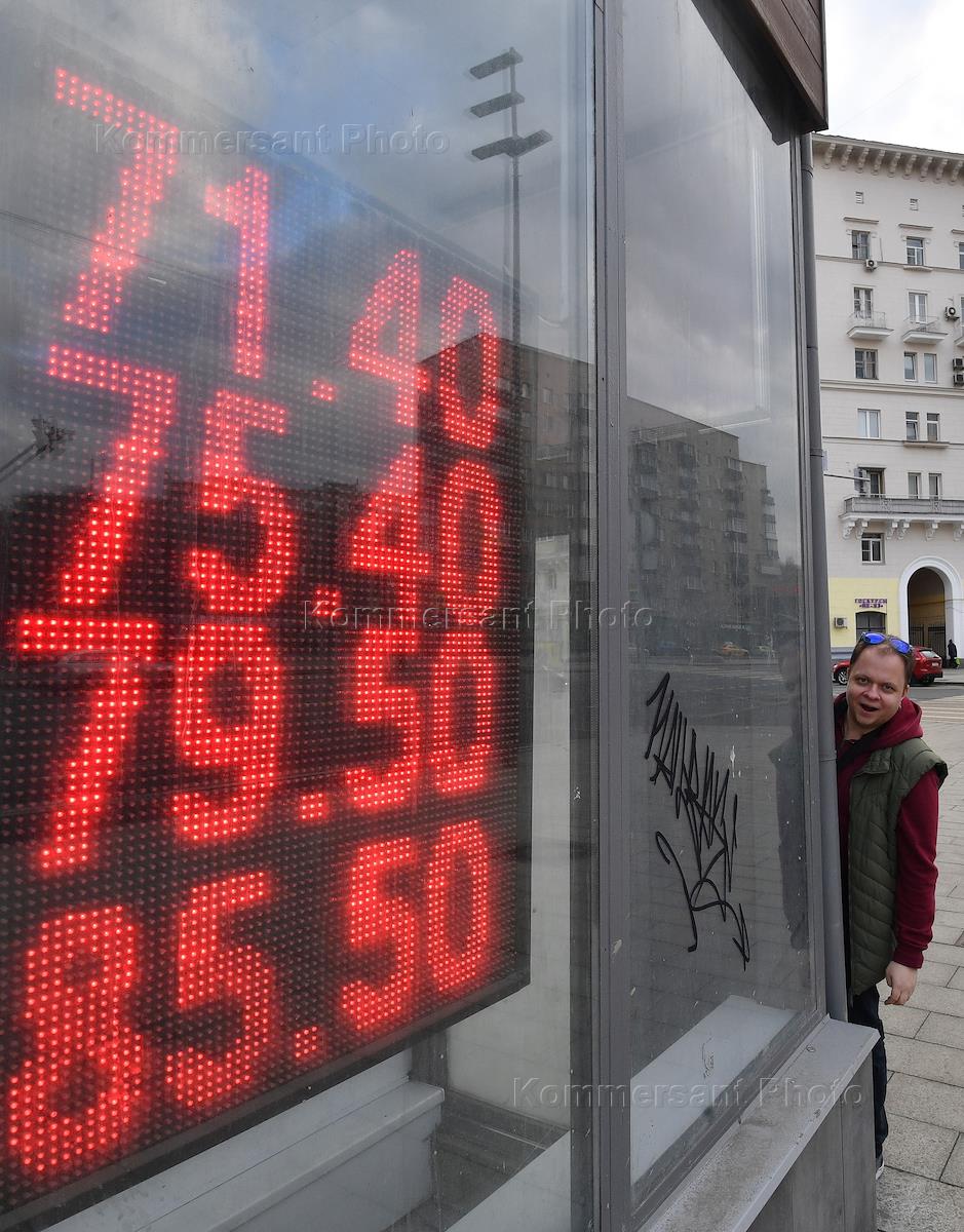 Жанровая фотография. Обменный пункт. Электронное информационное табло с курсами валют.