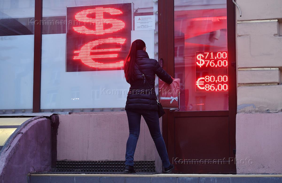 Жанровая фотография. Знак евро у пункта обмена валют.