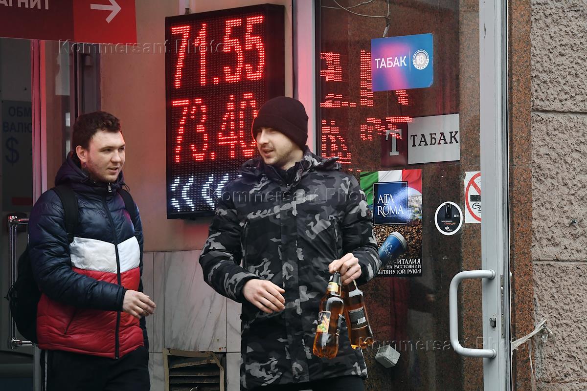Genre photo. Currency exchange point. Dollar rate on the electronic board.
