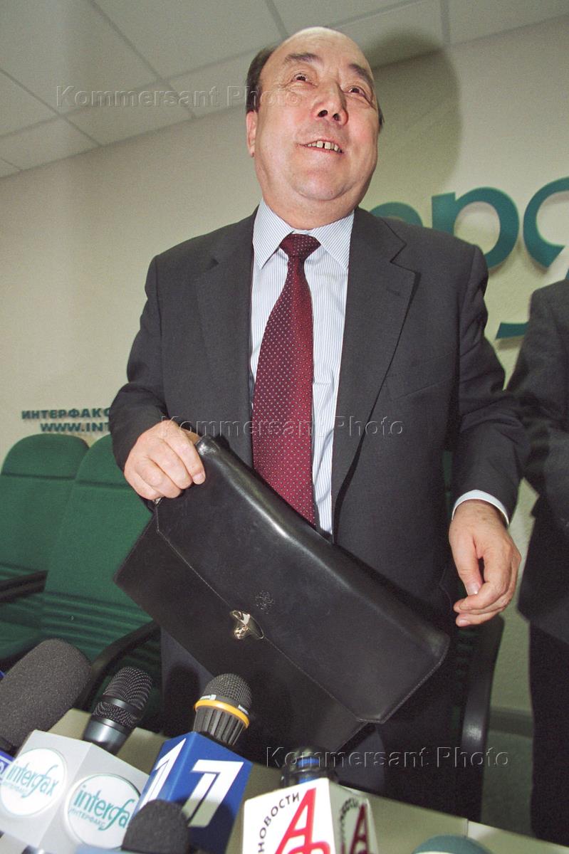 President of the Russian republic of Bashkortostan Murtaza Rakhimov is interviewed at thye news conference headlined 'First Meeting of State Council (Gossovet) New Members'. The news conference was held in the Interfax agency headquarters.