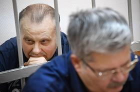 Оглашение приговора бывшему заместителю директора Федеральной службы исполнения наказаний (ФСИН) Олегу Коршунову, обвиняемому по делу о растрате средств, выделенных на закупку сахара и горюче-смазочных материалов, в Замоскворецком районном суде. Бывший заместителю директора ФСИН Олег Коршунов (слева) во время заседания суда.