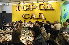 Презентация книги рецептов "Здорово едим. Попробуй счастье на вкус" Наташи Давыдовой в магазине "Город сад". Автор книги, блогер Наташа Давыдова (слева) во время презентации.
